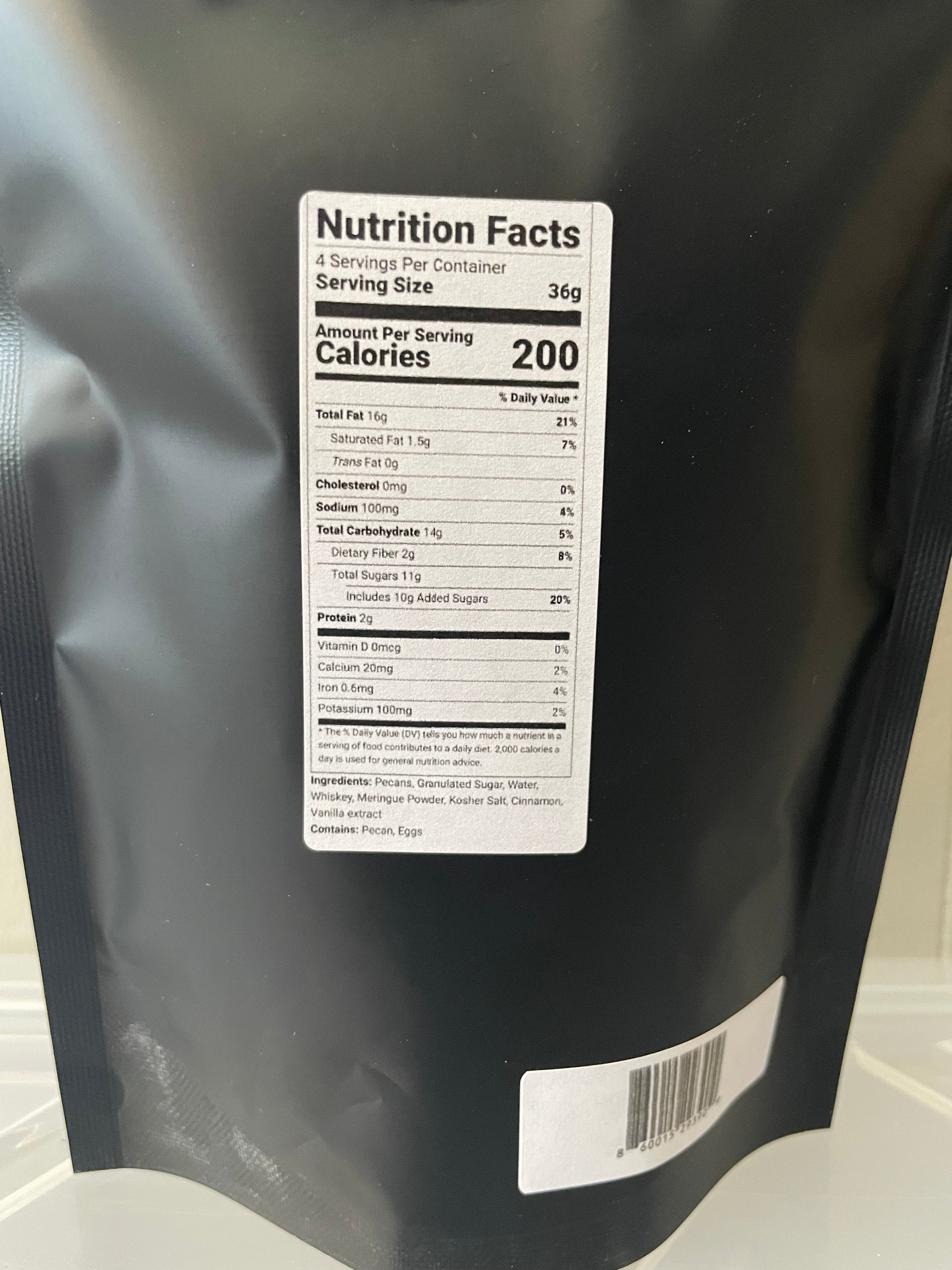 Ingredients: Pecans, Sugar, Whiskey, Kosher Salt, Cinnamon, Vanilla Extract, Water, Meringue Powder, Sanding Sugar