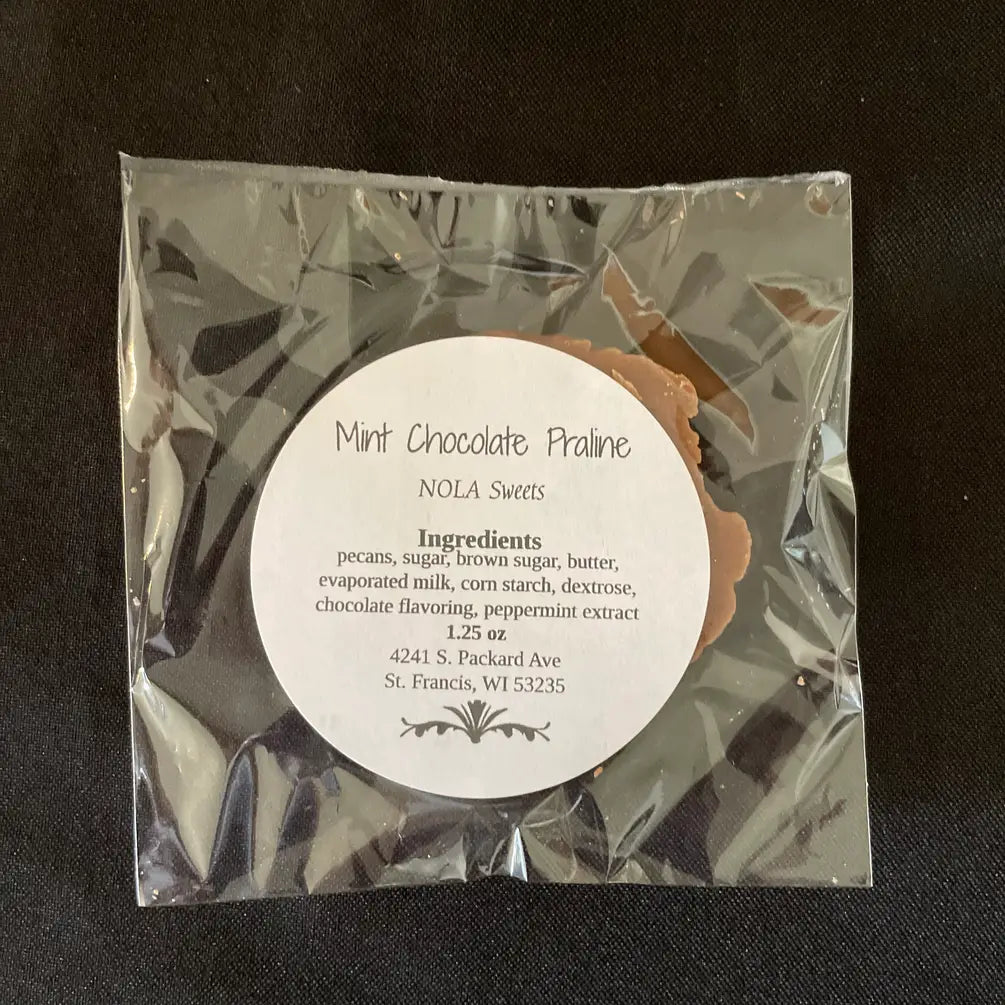 Ingredients: Pecans, Sugar, Brown Sugar, Salted Butter, Evaporated Milk, Cornstarch, Dextrose, Chocolate Flavoring, Peppermint Extract